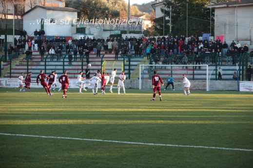VALLO DELLA LUCANIA – Un gol di Senè spinge la Gelbison in zona play off. Dopo una partita combattuta e quando ormai il risultato sembrava essere il pareggio ecco il guizzo dell’attaccante vallese che mette a segno la sua quarta rete in campionato e regala alla squadra del presidente Maurizio Puglisi il quinto posto in classifica. La Gelbison e l’Acireale scendono in campo con un modulo speculare il 4/4/2. Santosuosso impiega Dell’Isola dal primo minuto al posto dell’infortunato Pascuccio, mentre i siciliani devono fare a meno dello squalificato Savanarola. Parte subito forte la squadra di casa che già al 2’ si rende pericolosa con Pecora che serve Senè che incrocia a volo alla destra del portiere avversario, ma la palla finisce fuori. Al 12’ si fanno vivi gli ospiti con Trovato che tenta una percussione in area e serve Godino che di destro tira, ma non inquadra lo specchio. Ancora Godino al 14’ ci prova con una botta da fuori, ma il tiro risulta debole e centrale. Al 21’ si rifà viva la Gelbison con Tulimieri che si vede ribattere il tiro da un avversario, la palla così finisce sui piedi di Sica che fa partire un sinistro che sfiora il montante destro della porta difesa da Zelletta. Da questo momento si va avanti con un gioco lento e che si svolge prevalentemente a centrocampo segno che le squadre hanno paura a farsi del male. Allora Santosuosso decide di inserire, al 35’, il centrocampista avanzato Anastasio al posto del difensore Melcarne. La Gelbison passa a un 3/5/2 che sembra più redditizio e così al 40’ il nuovo entrato inziia un’azione pericolosa che viene concretizzata da Pecora che fa partire un tiro secco da fuori area ma nonostante il portiere battuto la sfera termina a lato. Al 44’ è sempre la Gelbison a rendersi pericolosa con una punizione dalla tre quarti che finisce sulla testa di Senè che è bravo a indirizzare verso la porta di Zelletta, ma la palla si perde di poco alta sopra la traversa. Si conclude così un primo tempo equilibrato che comunque non ha di certo entusiasmato i tifosi accorsi al “Morra”. Il secondo tempo inizia con gli ospiti che si vanno vivi in avanti in più di un’occasione. La prima è al 49’ con Lo Bosco che sfrutta un errore della difesa di casa, che sbaglia i tempi del fuorigioco, e così si ritrova da solo davanti a Spicuzza, ma un provvidenziale intervento di Borsa scongiura il peggio. Al 53’ episodio dubbio in area ospite con Tulimieri che crossa dalla destra un pallone forte e teso per Sica che viene anticipato da un avversario, la sfera però carambola sul braccio di un difensore dell’Acireale, l’arbitro lascia correre tra le proteste dei vallesi. Al 61’ invece è Lo Bosco che tra due avversari si gira e tira ma il pallone, centrale, è preda di Spicuzza. Santosuosso per far diminuire la pressione avversaria decide di inserire De Cesare al posto di Anastasio, siamo al 71’, e così la squadra di casa passa al 4/3/3. I frutti si colgono dopo cinque minuti. Al 76’ è Braca che serve un pallone a Senè che riesce a stoppare e a superare il diretto avversario; l’attaccante vallese mantiene la calma e piazza il pallone sul primo palo sfruttando l’uscita di Zelletta. E’ l’1-0 che fa andare in visibilio il “Morra”. La partita cambia con la Gelbison tutta rintanata a difendere l’importante vantaggio, mentre l’Acireale cerca una reazione che si potrebbe concretizzare al 91’ quando la difesa vallese si ferma pensando a un fuorigioco, l’arbitro fa continuare e così Godino a due passi da Spicuzza può tirare indisturbato ma la palla termina sulla rete esterna. I giocatori della Gelbison tirano un sospiro di sollievo, mentre Di Stefano di Brindisi decreta la fine dell’incontro tra le ovazioni dei tifosi di casa che festeggiano calorosamente i propri beniamini.