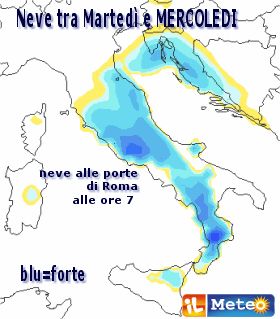 Si scava nel pomeriggio-sera una circolazione depressionaria con minimo sul Tirreno, maltempo al centro-sud, Sardegna, Sicilia e resto del sud e canora su Romagna e parte dell'Emilia. Neve su Emilia Romagna, su Toscana, Umbria, Marche fino in pianura e a quote bassissime 100-200m su resto del centro nella notte e poi a 5-600m al sud e 800m sulla Sicilia. Nel corso della notte neve fino alle porte di Roma fino a mista neve a Roma tra le 4 e le 7.