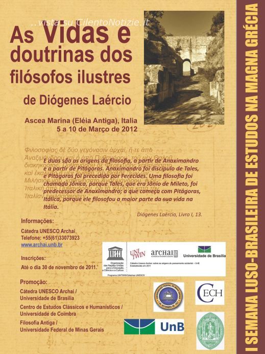 La “semana” è organizzata dalla Cattedra UNESCO ARCHAI dell´Università di Brasilia (www.archai.unb.br), in collaborazione con l´Università di Coimbra, l´Università di Lisbona e l´Università Federale di Minas Gerais, ed ha luogo presso la Fondazione Alario per Elea-Velia perché lì si è creato un cenacolo di specialisti grazie agli appuntamenti annuali denominati ELEATICA (il prossimo avrà luogo nei giorni 15-18