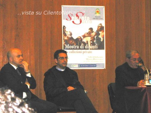 La Mostra “Seicento Sacro”, visitabile sino al 25 maggio tutti i giorni dalle ore 9 alle 13 tranne la domenica, al museo Diocesano di Vallo della Lucania è stata inaugurata con vasta affluenza di pubblico interessato, tra cui alunni del Liceo Scientifico. Il direttore del Museo, Monsignore Carmine Troccoli, ha anche evidenziato l’importanza dell’instaurato rapporto tra le diocesi di Vallo della Lucania e di Teggiano_Policastro che ha favorito la realizzazione di tale evento. Sottolineata dal Sindaco Antonio Aloia l’importanza dell’Arte nella formazione degli individui e quindi per la migliore qualità della società. Don Valeriano Pomari, Responsabile delle Comunicazioni, ha coordinato i vari interventi, ha concluso il Vescovo S.E. Ciro Miniero. La visita alle opere è stata condotta dal parroco di Marina di Camerota, in una suggestiva, soffusa atmosfera che esaltava le importanti opere pervase di ombre e luci. Hanno colpito in modo particolare, per la novità in tale contesto, alcune moderne installazioni che hanno condotto dal passato al presente, dall’oltre alle problematiche sociali. Un vero coinvolgente mezzo che, oltre ad esaltare la comunicazione emotiva ed evidenziare il legame simbolico tra l’Arte e la realtà’, ha rivelato un’impostazione moderna ed efficace della Chiesa.