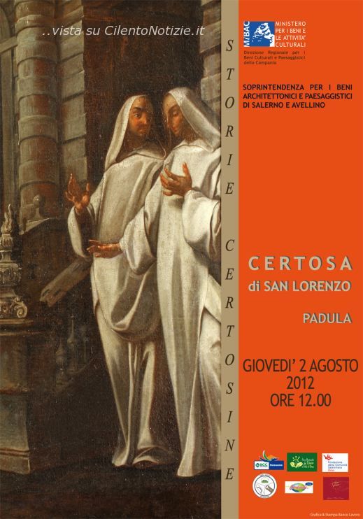 Giovedì 2 agosto 2012, alle ore 12, presso la Certosa di San Lorenzo, a Padula (SA), sarà inaugurata la mostra “STORIE CERTOSINE”, a cura della Soprintendenza BAP di Salerno e Avellino diretta da Gennaro Miccio.