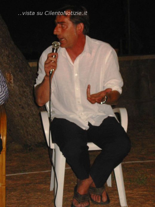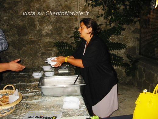 Nella locandina sono stati simbolicamente avvicinati i due Campanili, in un superamento delle antiche chiusure. Dopo il saluto di Malzone, ha fatto gli onori di casa il Vicesindaco ed Assessore alla Cultura di Castellabate Luisa Maiuri, che, con discorso sciolto e di contenuto, ha ricordato le similitudini dei due paesi cilentani, come l’origine intorno all’anno mille di entrambi, l’essere paesi decretati dall’Unesco Patrimonio dell’Umanità, la loro salubrità, le acque mitiche che li bagnano, il mare a Castellabate ed il fiume dalle acque curative a Stio. L’Assessore al Turismo di Castellabate Florio ha salutato tutti. Anche l’Assessore al Turismo di Stio D’Ambrosio, ha richiamato l’importanza di scambi tra le due realtà, in particolare legata al mare per Castellabate ed alla montagna per Stio, poco effettuati nel passato, limitati a “scambi di alici con fagioli”, che dovranno svilupparsi per un turismo che dal mare conduca al retroterra collinare e montuoso in un’esaltazione del pregio che questa terra cilentana offre nel variare del suo paesaggio, delle sue tradizioni e colture a distanza di pochi chilometri. Ha richiamato alle iniziative del suo Comune, dalla sagra nel bosco dei “cicci mmaretati” (17-23 agosto), ampliati quest’anno il 20 e 21 agosto anche da una messa in scena teatrale che coinvolge il pubblico, “Delitto di mezzanotte: lo sposalizio”, alle “Stiotipiche”, progetto che vede coinvolto il Centro Storico dal 15 Agosto al primo settembre.