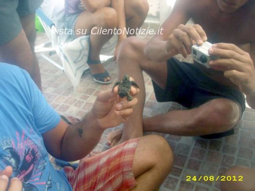 Delle 77 nuove arrivate se ne sono finora dischiuse 55, ed ieri, nel tardo pomeriggio, 10 di loro sono state portate al largo per essere liberate dagli uomini della guardia costiera, assistiti dai biologi del centro di recupero tartarughe marine della stazione zoologica Anton dohrn di Napoli, che, dopo averle ripulite e pesate, hanno effettuato “l’imprinting”, una tecnica che consente alle nuove nate di “imprimere” nella loro memoria i dati del luogo, cosi’ da potervi fare ritorno.