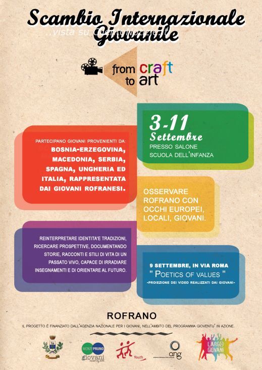 ROFRANO - Inserita nel collaudato programma Europeo "Youth in Action", "From Craft to Art" si propone di abbinare l'efficacia visiva del Video Editing ad una solida tradizione locale.