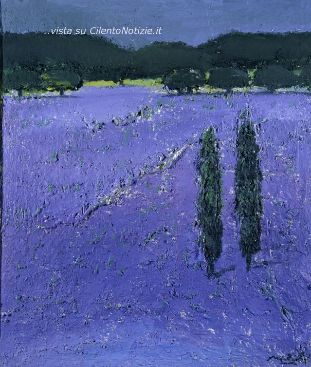 E’ una pittura che gioca anche sui contrasti tra la materia, con addensamenti di colore, e sfumature, assenze, che la trascendono in una spiritualità raggiunta.