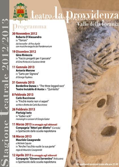 Evidente la soddisfazione della direzione e anche dei molti appassionati di teatro che hanno rinnovato la loro fedeltà alla proposta del nuovo cartellone 2012/2013 della Provvidenza. Ovviamente, stando sempre alle parole del direttore, l’impegno non è terminato, non solo perché mancano ancora circa tre settimane alla chiusura della vendita degli abbonamenti, ma soprattutto perché l’avventura è solo agli inizi. Infatti troveranno posto all’interno della grande sala anche il teatro per le scuole, che debutterà proprio questo mese con lo spettacolo “Palinuro: nocchiero di Elea” della compagnia Artisti Cilentani Associati, e numerose altre iniziative. Tra tutte non va dimenticata la rassegna delle compagnie amatoriali che rappresenta, ormai da anni, una iniziativa esclusiva, unica sul territorio nazionale, e prerogativa del teatro di Vallo della Lucania.