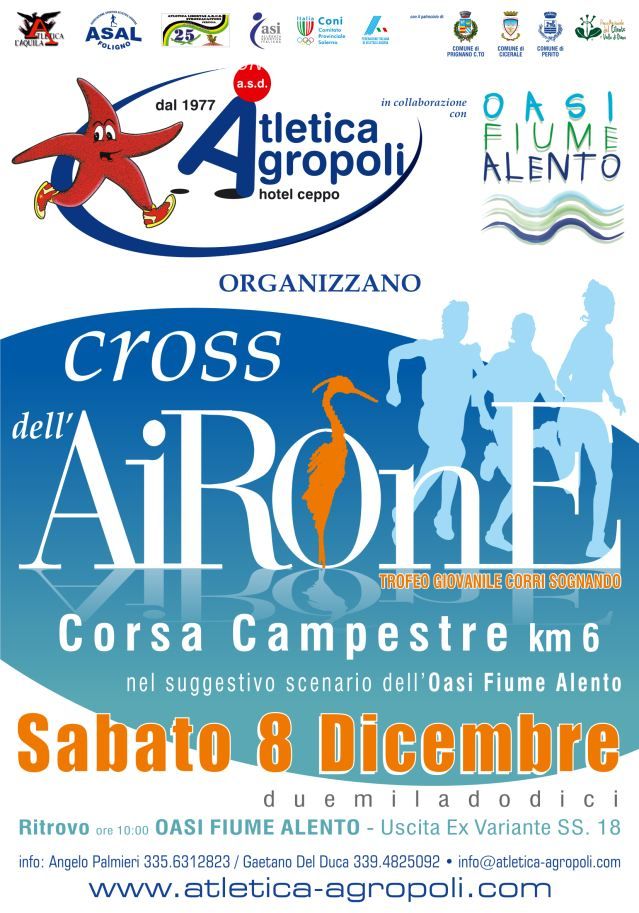 Ritorna la “Corri Sognando” che l'Atletica Agropoli organizza da quattro anni, una manifestazione di corsa campestre per unire sport e sociale. Infatti protagonisti della manifestazione sono i nostri ragazzi e le società con noi gemellate: Atletica L'Aquila, Asal Foligno, Arcs Perugia che per quel giorno si incontreranno per un solo scopo: quello di stare insieme e divertirsi grazie ad un'unica grande passione: l'atletica!