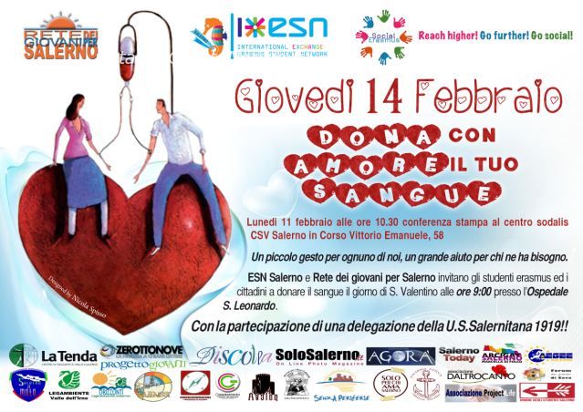 Nel giorno dedicato a San Valentino e agli innamorati, le due associazioni hanno pensato a creare un evento che prevedesse un atto di amore e solidarietà: la donazione del sangue. L’appuntamento è fissato per giovedì 14 febbraio, alle ore 09.00 presso l'Ospedale San Leonardo di Salerno