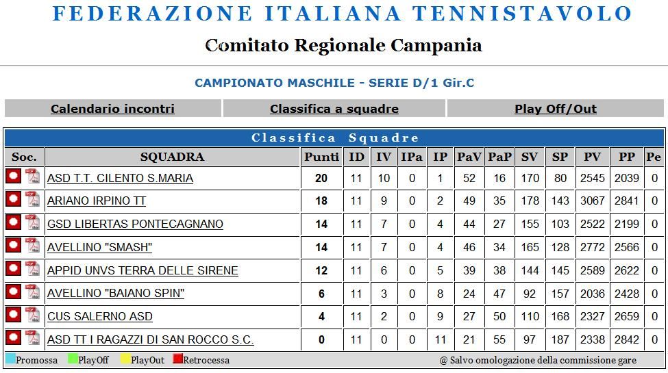 Negli altri incontri di D1 girone C c'è da sottolineare la vittoria del Sorrento sulla capolista, ormai ex, Ariano Irpino. Marco De Simone e Cristina D'Esposito si rivelano micidiali tra le mura amiche. Alla luce di questo risultato la classifica vede la squadra cilentana sola al comando della classifica con 20 punti. A 18 l'Ariano e a 14 Pontecagnano e Avellino. A tre giornate dal termine del campionato la strada per la promozione in C2 sembra in discesa ma guai ad abbassare la guardia. Le insidie sono sempre dietro l'angolo e i cilentani ne sono consapevoli. Il prossimo appuntamento contro Sala Consilina in programma sabato 20 aprile a S.Maria di Castellabate dovrebbe essere posticipato a sabato 27 a causa dei concomitanti campionati italiani CSi di Lignano Sabbiadoro a cui prenderanno parte anche atleti del TT Cilento.