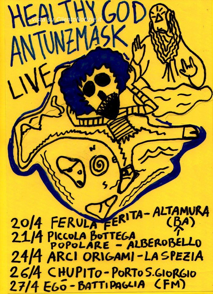 I due cantautori cilentani, Antunzmask di Santa Maria di Castellabate (ve lo ricordate “Benvenuti al Sud”, si?), Healthy God di Agropoli (già patria degli ...A Toys Orchestra) se ne vanno a spasso per lo stivale a portare in giro la loro musica in un doppio set acustico.