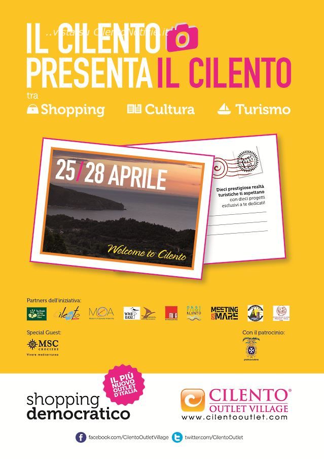 Il progetto “Il Cilento presenta Il Cilento” nasce dalla volontà del Cilento Outlet Village di integrarsi nel territorio dove è situato e promuovere le sue bellezze, nell’ottica di alimentare sempre più il binomio shopping-turismo. Per questo il Factory Outlet sta sviluppando partnership e progetti per favorire l’incoming turistico della zona.