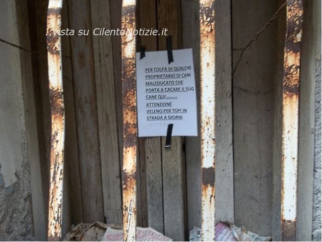 “attenzione veleno per topi in strada a giorni alterni cosi per cacate di cani” (sic).