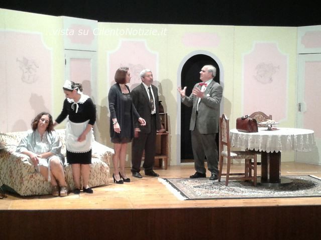 di Giovanni Mautone | BlogUn esordio che sa di timidezza, di vergogna, di pudore nei confronti di un’arte sacra come quella della recitazione. E un ottimo metodo per scacciare tutte queste paure scegliendo di portare con sé la propria terra, le proprie origini, ciò che da sicurezza ad ognuno di noi. Questo il sunto della serata che ha visto in scena, nell’ambito del premio per le compagnie amatoriali “Mons. Giuseppe Rocco Favale”, la più giovane delle compagnie in gara quest’anno nata a Pisciotta soli 5 mesi fa dopo aver vinto una dura ‘battaglia’ contro il timore di andare in scena, e che intende ricordare quel timore ironizzando sul proprio nome: “Amo perso a vriogna”. Sei personaggi che, a differenza dei loro Pirandelliani predecessori, l’autore lo hanno trovato subito nella persona di Giuseppe Palladino, che ha confezionato per loro un testo dal sapore tipicamente cilentano. Linguaggi, situazioni, luoghi e atteggiamenti familiari a tutta la platea fanno si che il contatto tra questa e il palcoscenico si stabilisca ben presto, ancor prima che il primo personaggio maschile entri in scena.