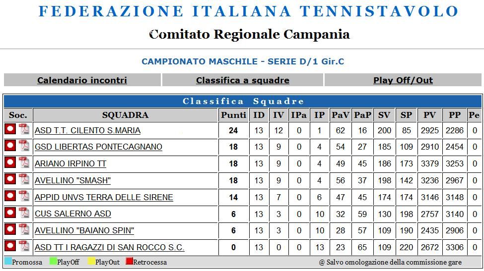 Dopo la penultima giornata di campionato del campionato regionale di serie D1 arriva la notizia nell'aria da tempo: la squadra di Castellabate con gli atleti Giuseppe Squitieri, Gennaro Santis e Francesco Iaccarino ottiene la vittoria del campionato e la promozione in serie C2. Ieri mattina, domenica 5 maggio, ad Ariano Irpino è andata in scena la sfida finale tra le prime due squadre della classifica. I locali secondi in classifica a 18 punti, a quattro di distacco dal TT Cilento (22) avevano un lumicino di speranza ancora acceso per tentare una rimonta ai limiti del miracoloso: avevano bisogno di vincere 5-1 e sperare che il Cus Salerno facesse lo sgambetto al TT Cilento nell'ultima giornata in programma sabato prossimo. L'aspettativa di riagguantare i cilentani in vetta alla classifica è stata stroncata sin dalle battute iniziali del match dalle prestazioni degli ospiti. Risultato finale netto, 5-0 per cilentani frutto delle vittorie di Squitieri su Ciano 3-0 e Cardinale C. 3-0, di Santis su Cardinale C. 3-1 e Petrone 3-1 e di Iaccarino 3-2 su Petrone. Quarto 5-0 di fila e settimo in totale di una stagione memorabile per i ragazzi di un territorio, il Cilento, che mai prima ad ora aveva visto il tennistavolo a livelli di serie C. Anzi, forse non l'aveva mai visto. Se non il ping pong praticato nei bar e sui lidi a livello amatoriale e ricreativo che niente ha a che vedere con lo sport del tennistavolo.