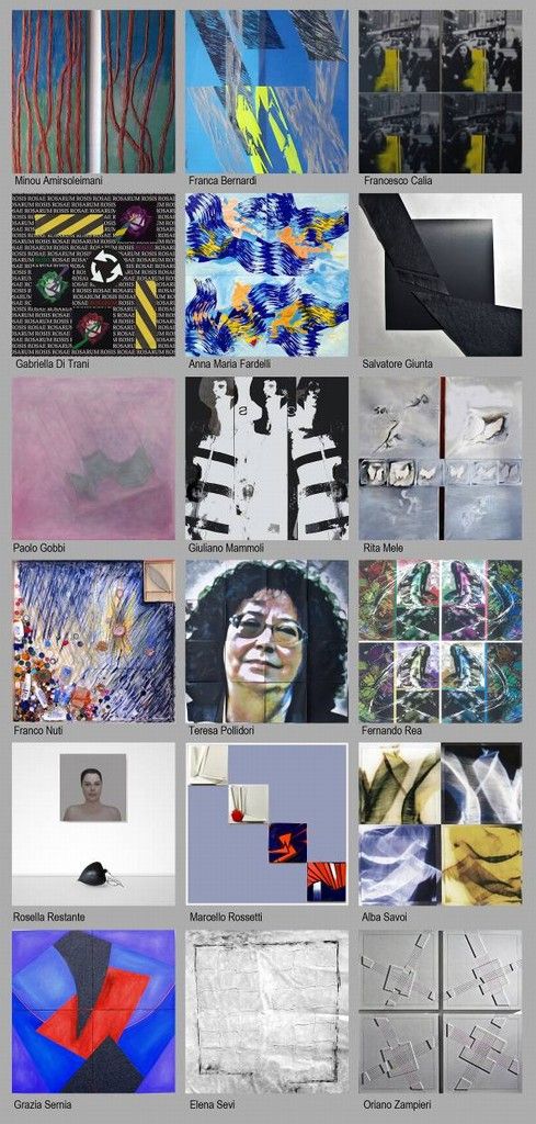 Gli artisti: Minou Amirsoleimani, Franca Bernardi, Francesco Calia, Gabriella Di Trani, Anna Maria Fardelli, Salvatore Giunta, Paolo Gobbi, Giuliano Mammoli, Rita Mele, Franco Nuti, Teresa Pollidori, Fernando Rea, Rosella Restante, Marcello Rossetti, Alba Savoi, Grazia Sernia, Elena Sevi, Oriano Zampieri