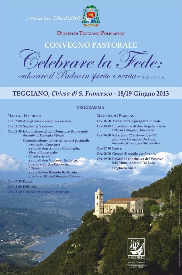 Il 18 e il 19 giugno p.v., come noto, si terrà a Teggiano, presso la Chiesa di San Francesco, il Convegno Pastorale Diocesano.