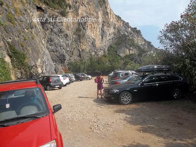 l’area risulta adesso adibita a parcheggio auto: si presume molto probabilmente del lido balneare prospiciente, in violazione norme vigenti e al pericolo di possibili frane dalla parete rocciosa.