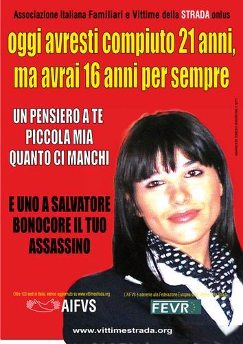 Con queste mie parole, chiudo, ringraziando l'AIFVS (Associazione Italiana Familiari Vittime Della Strada)e tutte le persone che mi sono state accanto e quelle che ogni giorno continuano a farlo..."