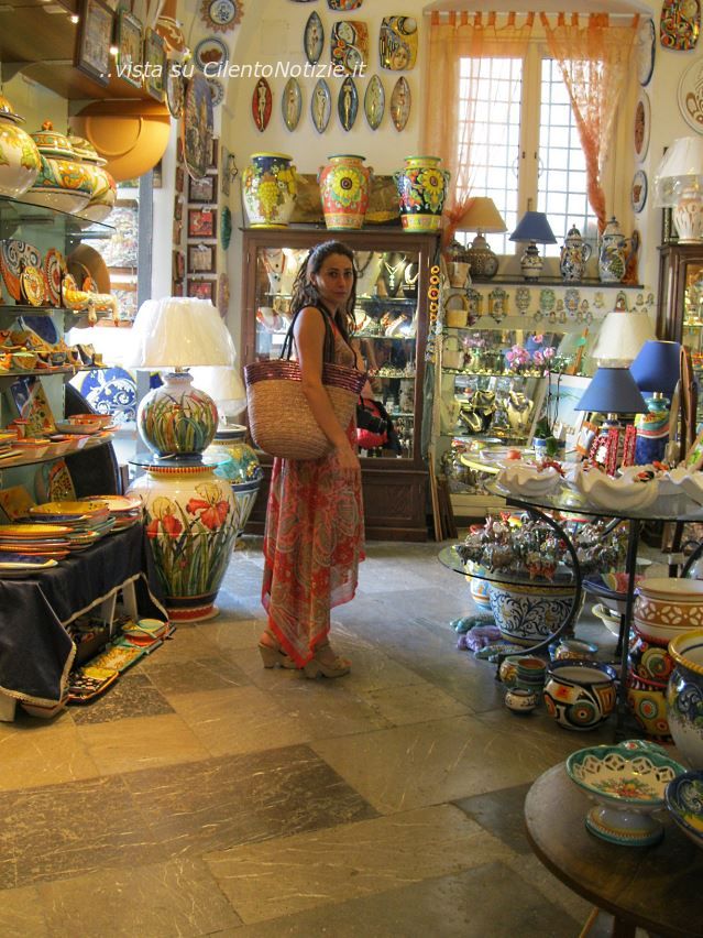 L’arte della ceramica non è cosa facile: non si usano colori come gli altri; prima della cottura hanno appaiono di una tinta e variano dopo la cottura. Se mescolati sapientemente dalle mani di un ceramista esperto, possono raggiungere tutti i toni e le sfumature necessarie a rappresentare ogni cosa: dai paesaggi agli oggetti, ma anche la carnagione dell’epidermide, o i mantelli di cavalli, di cani, di gatti. Se mescolati sapientemente. Per fare ciò occorre davvero grande abilità: abbiamo detto che i colori cambiano in cottura e, ad esempio, c’è un verde che diviene di una splendida sfumatura smeraldo, ma, dapprima, non lo distingueresti dal nero. L’artista ceramista sa bene, “ad occhio”, per certi toni che assume il verde prima che vi si immerga il pennello, la differenza. Questi colori, dapprima in polvere, vengono sciolti nell’acqua, in apposite vaschette munite di un piccolo incavo circolare nella parte superiore, che assomigliano a posacenere, perché hanno anche alcuni buchi adatti allo scopo di lasciar scivolare via l’acqua in eccesso.Vi sono colori sottocristallina apiombici, da usare su biscotto (ossia il pezzo cotto una sola volta), con temperatura di cottura che variano da 950° a 1020° ed hanno costi elevati. Fin dai primi giorni, mentre cercavo di riprendere i contatti con la tipologia dell’arte (per dipingere su ceramica devi avere un laboratorio attrezzato, comprensivo di forno e vasche per mescolare gli smalti ed immergervi gli oggetti da preparare, non è come per la pittura ad olio, a tempera, ad acquarello ed altro), non potevo non ammirare sia le opere già lavorate dal mio amico Maestro, che l’abilità con cui riusciva a realizzare qualsiasi oggetto. Dall’argilla cruda, ricavava con le sue sole mani, opere d’arte. La gran parte delle argille può essere definita come silicato idrato di alluminio e magnesio: la loro formula chimica generale è Al2.2SiO2.2H2O. Ma vi sono molte variabili, in quanto il silicio e l’alluminio possono essere sostituiti da altri elementi, quali il magnesio ed il ferro, che fanno assumere all’argilla colori diversi e differenti tempi di cottura. Si tratta dello stesso materiale con cui entrarono in contatto gli uomini preistorici, incontrando sul loro cammino le rocce feldspatiche e di conseguenza argille primarie e secondarie (le seconde sono più pure) e che in seguito ci ha regalato le ceramiche greche, etrusche e romane. Il caolino, trae il nome dal cinese Kau-ling, che è quello della collina all'est di King-te-chen, dalla quale il gesuita francese d'Entrecolles trasse i primi ricercatissimi campion, che giunsero in Europa, al principio del sec. XVIII. Il caolino puro può giungere a fondere a 2000 gradi centigradi. Quello che spesso non si sa è che un buon maestro ceramico deve conoscere anche la tecnologia della ceramica, annesse alla chimica. Chiaramente solo un vero Maestro ceramico, come Vittorio Ruocco, sa lavorarle al tornio, o coi colombini, o a mezzo stampi e poi cuocerle, smaltarle, dipingerle, sino a fare sì che sfidino i secoli e facciano mostra di sé nei musei o nelle case di chi le ama. Mentre, dunque, nell’inverno del 2006, riprendevo il contatto con l’arte, Vittorio, con molta semplicità, mi lasciava libera di lavorare, seguendomi con occhio esperto e intervenendo soltanto di tanto in tanto coi consigli, ma senza darsi alcuna pretesa da maestro. Benché lo fosse. E’ a suo merito se ho potuto elaborare nuovi lavori in ceramica, che ho portato con me al rientro in Napoli e nuove esperienze nel campo di questa meravigliosa tecnica senza tempo. Nel ritornare, dunque,giorni orsono a visitare il suo grande spazio espositivo di Minori, dapprima negli ampi locali di vendita posti sul lungomare, mi sono incantata per la varietà delle opere esposte, cresciute di numero e tipologia, fatte per accontentare qualsiasi tasca e desidero o necessità. Percorrendo i vicoletti stupendi di Minori, l’ho poi raggiunto sul lavoro, nel laboratorio che inaugurò nel 1985, a soli 23 anni, luogo che lo vede intento per intere giornate nella sua occupazione preferita. L’Ho ritrovato, difatti, con un braccio immerso fino alla spalla nella vasca degli smalti, laddove mescolava uno smalto bianco. Scherzando, sorridendo nel volto scurito dal sole dell’estate, in contrasto con il bianco del braccio, ha detto che stava producendo mozzarelle. Molti prodotti ceramici, difatti, sono sottoposti a trattamento superficiale mediante rivestimento trasparente (vetrina) oppure opaco e colorato (smalto).