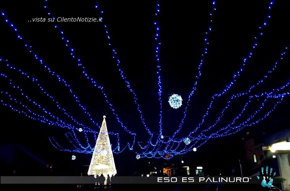 Sopresa e applausi, tanti applausi, al momento dell’accensione delle oltre 5000 lampadine a led che ricoprono i 14 metri di albero di Natale e l’intera superficie della piazza; davanti agli occhi dei presenti un’onda blu tempestata di sfere color ghiaccio che si apre al cospetto del maestoso albero si è accesa illuminando l’inizio ufficiale del programma natalizio che, oramai da quattro anni, viene proposto nella cittadina cilentana.