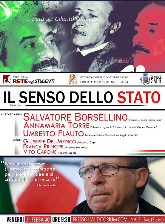 Venerdì 21 febbraio a Sapri l’iniziativa "Il Senso dello Stato". Si svolgerà nei locali dell’Auditorium Comunale “G. Cesarino” di Sapri (Sa) a partire dalla ore 9.30.