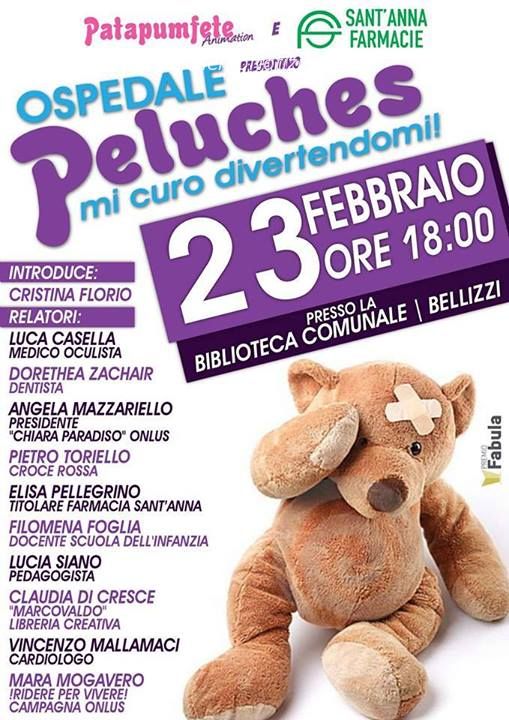 minimizzando così la paura, la tensione, l’ansia e la frustrazione di questi momenti. “L'iniziativa dell'ospedale dei pupazzi – dichiara l’organizzatrice Cristina Florio - serve a far conoscere l'ospedale ai più piccoli attraverso il sorriso, in maniera tale da non averne paura”. “I pazienti da curare – continua - saranno i loro orsacchiotti e le loro bambole e i bimbi seguiranno tutte le tappe della visita medica accompagnati da animatrici dottoresse che gli faranno da guida”. Tutti i bambini potranno portare il loro peluche preferito con lo scopo di aiutare i piccoli a superare eventuali paure o pregiudizi nei confronti di medici ed ospedali, usando appunto i loro pupazzi come “transfert”. “La loro curiosità li spinge a fare domande, a provare a fare loro stessi da medici con garze e bende e provando ad usare gli strumenti messi a disposizione, anche se magari all'inizio fanno un po' paura. Poi arriva la diagnosi: baci, coccole, favole, oppure una dieta al pupazzo troppo ciccione. Tutto – conclude Florio - viene scritto in una cartella clinica che poi il bambino porta a casa”. L’appuntamento è per domenica 23 Febbraio alle 18 presso la Biblioteca Comunale di Bellizzi in Piazza Giovanni XXIII.