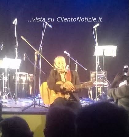 Una serata che inizia “col botto”, ovvero che ci mostra le immagini dell’ultimo concerto a cui Aniello prese parte prima di ammalarsi e scomparire, esibendosi nel suo cavallo di battaglia; “So nato a lu Ciliento e me ne vanto”. Ad avvicendarsi successivamente sul palcoscenico i tanti artisti della scena musicale popolare cilentana, che hanno reso omaggio al medico cantautore ciascuno interpretando a scelta uno tra i suoi brani più famosi. Emozioni che hanno pervaso la sala e hanno accompagnato la serata lungo tutto il suo svolgimento, riconoscibili sia nelle note della chitarra di Angelo Loia che nella voce dei tanti artisti che lo hanno conosciuto e lo hanno voluto bene. Da “chitarra mia”, unico brano scritto in italiano, ai brani più sentimentali di De Vita legati ciascuno ad un particolare momento della sua vita e composti in dialetto (pensiamo a “Chi t’ha fatto fa” che racconta il viaggio in America del padre, oppure “Margarita”, l’amore per una donna, “Lo bbene perduto”, brano dedicato al suo paese natale) alternando il tutto con pezzi più frizzanti quali “Scarrafone”, “Aria re viento re terra”,”Le prete re la via”, “Siente che te rico” (capaci di scaldare il pubblico sia per la loro fama che per l’interpretazione magistrale di alcune delle voci maggiormente conosciute del Cilento). È stato infatti il contributo di ogni singolo artista che ha reso ancor più speciale la serata, poiché ciascuno con il proprio trasporto e la propria voce ha saputo creare un alternanza di stili e voci meravigliosamente interessante. Artisti del calibro di Peppe Cirillo, Piera Lombardi, Alina Di Polito, Mauro Navarra, Paola Salurso a cui si aggiungono le voci di Ketty Vermiglio, Nicola Napolitano o Alfina Scorza e dei tanti altri cantanti e musicisti a cui non vogliamo fare torto non citandoli, ma a cui di certo va il merito di essere riusciti sapientemente a omaggiare un grande personaggio del Cilento.