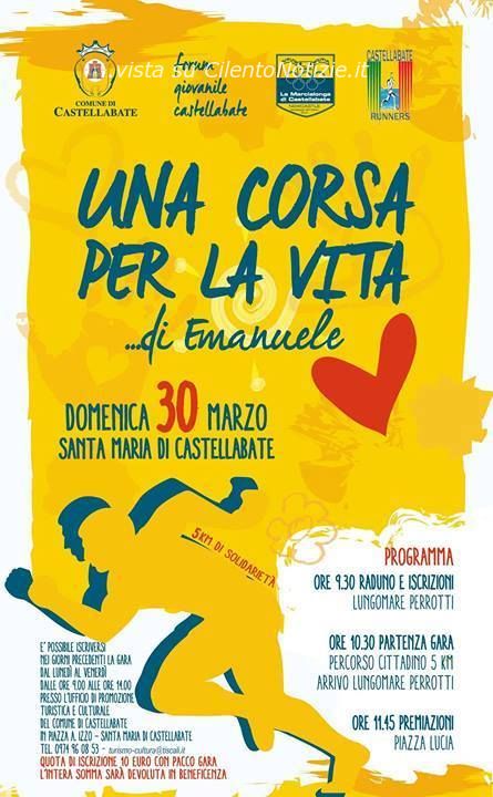 Una giornata di solidarietà, con una maratona, musica, spettacoli, degustazioni e un flashmob, per raccogliere fondi per Emanuele Scifo. Si svolgerà domenica 30 marzo a Santa Maria di Castellabate. L’iniziativa è organizzata dal Forum Giovanile di Castellabate insieme al Comune, con il coordinamento logistico dell’Ufficio promozione turistica e culturale.