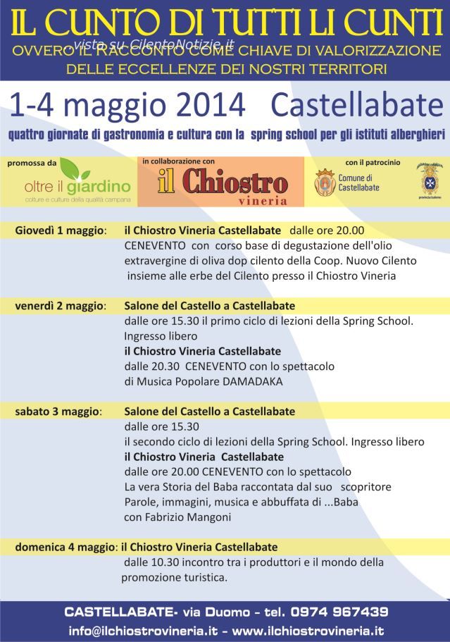 Nella Patria della Dieta Mediterranea, il Cilento, e in uno dei Centri Storici più suggestivi d’Italia, Castellabate, si tiene la prima Spring School dedicata al Racconto come strumento di promozione e valorizzazione delle nostre eccellenze e dei territori da cui provengono.