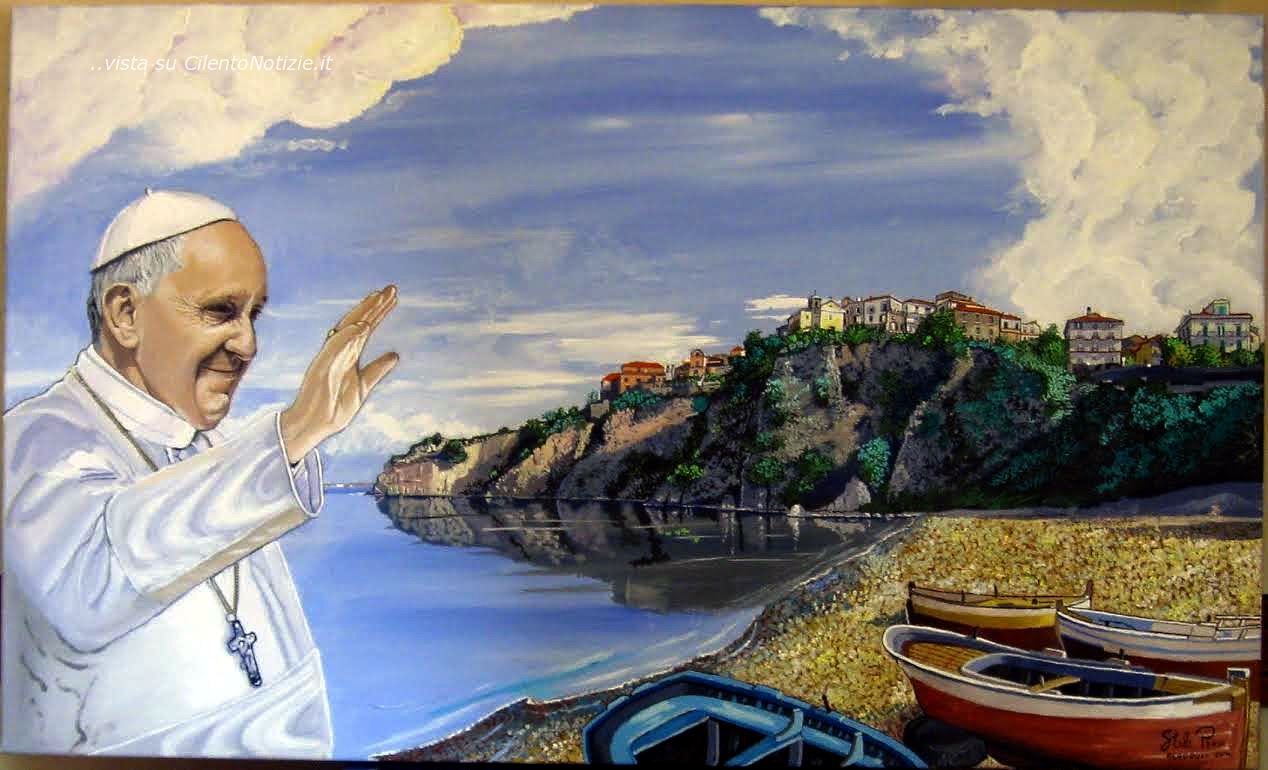 Il dipinto, realizzato dall’artista Alfonso Stile e che vedete nell’immagine in allegato, è l’omaggio della Città di Agropoli a Papa Francesco.