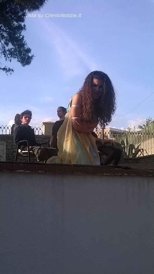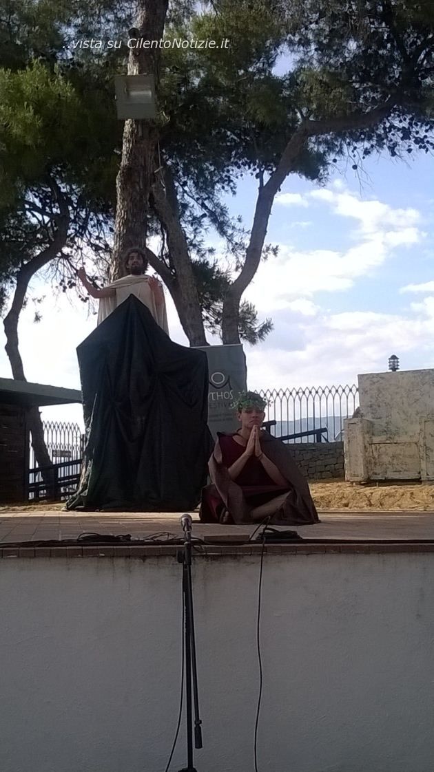 I suoi compagni e i docenti invece puntano l’accento sul fatto che “si tratta di un posto veramente meraviglioso, non è usuale trovare teatri che affaccino sul mare, su un mare come questo. Complimenti all’organizzazione veramente efficiente; come prima edizione ci sembra tutto ben organizzato, è ovvio che la manifestazione può crescere e migliorare, e ci sono tutti i presupposti. Non speravamo nella vittoria, per una questione di genere; avevamo messo in cantiere già da tempo una commedia e abbiamo deciso di non cambiare testo a metà percorso e quindi partecipare con questo spettacolo, ma eravamo convinti che la tragedia colpisse di più la giuria. Inoltre la commedia era di tono laico, nonostante il Festival promuovesse un argomento quale quello del Mito, quindi la nostra scelta è stata quella di impostare il testo seguendo proprio il filo conduttore del Festival, e quindi facendo molta leva sulle Nuvole appunto, e quindi sul concetto di divinità astratta.“