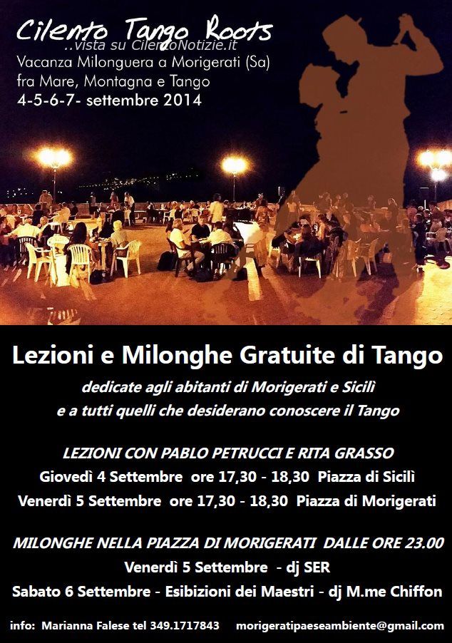 LEZIONI E MILONGHE GRATUITE AL CILENTO TANGO ROOTS DI MORIGERATI