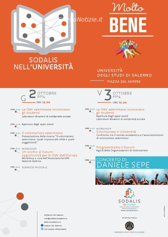 Incontrare i giovani studenti universitari per favorire la loro partecipazione alle attività di volontariato del proprio territorio. È questo l’obiettivo dell’iniziativa “Sodalis nell’università” promossa dal Centro Servizi per il Volontariato della provincia di Salerno con il patrocinio morale dell’Università degli Studi di Salerno.