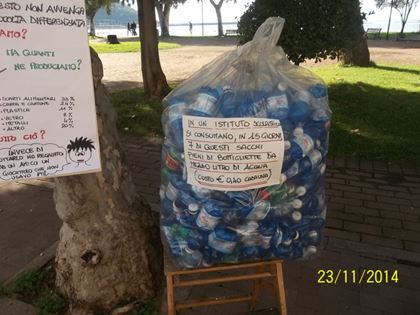 In occasione della settimana europea della “Riduzione dei Rifiuti”, Fare Verde Cilento ha allestito sul lungomare di Sapri, domenica 23 novembre, due banchetti dove sono stati esposti diversi cartelloni sul consumo indiscriminato di bottiglie di acqua minerale in plastica – specialmente quelle da mezzolitro che in molti istituti scolastici vengono consumate ogni giorno – non sapendo che la plastica delle bottiglie deriva dal petrolio e contiene il bisfenolo A (BPA) sostanza altamente pericolosa non presente in natura che tende ad accumularsi nell’organismo.