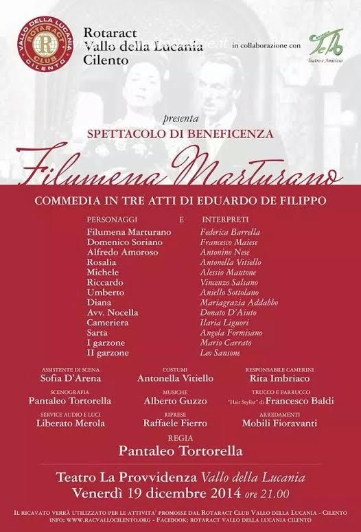 Venerdì 19 dicembre 2014 alle ore 21.00 presso il Cineteatro “La Provvidenza” andrà in scena la commedia “Filumena Marturano”.