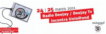 L’emittente diretta dal popolare Linus, che sarà rappresentato per l’occasione da Nikki e Dj Aladdin, trasmetterà due puntate della trasmissione radiofonica “Tropical Pizza” (entrambi i giorni con inizio alle 15:30) direttamente dagli studi di Unis@und. Insieme alle dirette radiofoniche, DeeJay TV farà parte della delegazione: è prevista, infatti, la registrazione di R*U*F*U*S*, format che viaggia con i ragazzi delle università italiane alla scoperta delle loro città e del mondo delle radio universitarie che ascoltano o per cui collaborano.