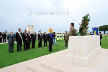 Il presidente della Provincia di Salerno, on. Edmondo Cirielli, in occasione della Festa del 25 aprile, ha fatto visita al Cimitero Militare degli inglesi di Montecorvino Pugliano. Sul monumento in memoria dei caduti durante lo sbarco del settembre 1943, il presidente della Provincia ha deposto una corona di alloro alla presenza dei Sindaci di Montecorvino Pugliano, Bellizzi, Montecorvino Rovella, Pontecagnano, del presidente del Consiglio provinciale Fernando Zara, del senatore Vincenzo Fasano e delle autorità militari. Infine, Cirielli ha apposto la firma nel registro d’onore del Cimitero ed ha ricordato il sacrificio dei tanti giovani inglesi con una breve preghiera.