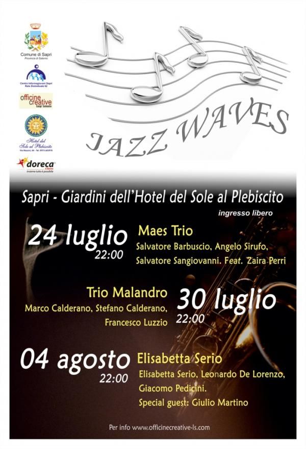 Passione, impegno e tanta buona musica questi gli ingredienti del ‘Jazz Waves’ la prima edizione del Festival jazz, che si terrà a Sapri nello splendido scenario dei giardini dell’Hotel del Sole al Plebiscito e che vedrà esibirsi tra gli altri, la vincitrice del premio ‘Lucca Jazz Donna 2011’, Elisabetta Serio.