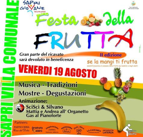 Lo scorso anno, alla sua prima edizione, ebbe un successo inaspettato diventando uno degli eventi più seguiti dell’estate a Sapri. Ritorna, venerdì 19 agosto, l’appuntamento con la Festa della Frutta, organizzata dai ragazzi del gruppo “Sapri Giovane” con il patrocinio del Comune di Sapri.