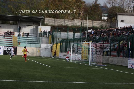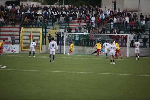 VALLO DELLA LUCANIA – E’ una Gelbison che in casa non sa vincere e il trend negativo si è ripetuto anche contro il Valle Grecanica. E’ così arrivato il quinto pareggio consecutivo tra le mura amiche del “Morra” e un punto che amareggia la formazione vallese. La squadra di mister Longo parte subito forte e già al 2° minuto crea un’occasione da gol quando Braca batte una punizione dalla destra, la palla attraversa tutta l’area di rigore avversaria ma Senè non riesce nell’aggancio. Al 5° primo episodio dubbio dell’incontro: Manzillo, che alla fine risulterà il migliore in campo, batte un corner con la palla che termina la propria corsa direttamente in porta dove trova l’estremo difensore Nucera a smanacciare sulla linea. Secondo i calciatori vallesi il pallone ha oltrepassato la riga, ma l’arbitro non è d’accordo e fa proseguire. E’ una Gelbison arrembante che si rende ancora pericolosa all’8° minuto sull’asse Fariello-Tulimieri con quest’ultimo che non riesce a calibrare un buon tiro. All’11° prima occasione per gli ospiti con il capitano della Gelbison Sica che perde il pallone al limite dell’area avversaria e fa ripartire il contropiede giallorosso che si conclude con il tiro di Niscemi che viene bloccato da Spicuzza. Si arriva così al 17° quando Melcarne batte un fallo laterale nella metà campo avversaria e la traiettoria della sfera di cuio finisce sulla testa di Senè che si è riesce a coordinare bene, ma è ancora Nucera a mettere in angolo. E’ un primo tempo giocato a viso aperto da entrambe le formazioni e così al 25° è il Valle Grecanica che va vicino alla segnatura con Ike che si incunea palla al piede nella difesa vallese, arriva a tu per tu con Spicuzza, tira forte ma la palla è respinta da un pronto intervento del portiere. Al 32° la Gelbison trova il gol. Punizione dalla trequarti di Manzillo che trova una parabola magica che lascia stupefatto l’estremo avversario che non può far altro che osservare la sfera terminare in rete dopo che ha toccato la base interna della traversa. La Gelbison ora gioca sulle ali dell’entusiasmo e così al 37° è Tulimieri che serve Sica che fa partire un tiro verso la porta avversaria dove c’è un attento Nucera che neutralizza. Al 41° è ancora Manzillo a creare un pericolo con un’altra punizione dalla trequarti, più centrale rispetto a quella del gol, ma questa volta la palla finisce di un non nulla sopra la trasversale. Dopo tre minuti di recupero l’arbitro Mari di Bari manda tutti negli spogliatoi. A inizio secondo tempo le squadre si presentano senza alcun cambio ed è di nuovo la Gelbison a rendersi pericolosa al 48° con Senè che imbecca Tulimieri sul filo del fuorigioco, ma l’attaccante classe ’92 vede il suo tiro parato da Nucera. Sull’azione seguente l’occasione capita a Senè che non è freddo sotto porta e spreca, con un tiro fuori, un’altra occasione buona per il raddoppio. La partita scorre lenta in questa seconda frazione con la Gelbison che sembra non patire gli sterili attacchi avversari. Si arriva al 64° quando Senè si invola sulla sinistra e appena entrato in area viene contrato in area da Dall’Oglio in scivolata. Il pubblico di casa e gli stessi calciatori vallesi chiedono la massima punizione, ma l’arbitro fa proseguire. Si giunge così al 78° quando il rigore Mari lo assegna al Valle Grecanica. L’azione che porta alla massima punizione inizia da Dall’Oglio che crossa per Citro che a sua volta appoggia per Iozzia che vede il tiro a botta sicura respinto da Spicuzza in angolo. Sulla seguente azione Spicuzza aggancia i piedi di un avversario e l’arbitro non può che concedere il penalty che viene trasformato, con freddezza, da Manganaro. Il pari sembra andare bene ai calabresi che rischiano una sola volta di capitolare al 91° quando Braca calcia una punizione dal limite destro dell’area ma la sfera sfiora la traversa perdendosi sul fondo. Cinque i minuti di recupero accordati dall’arbitro che fischia la fine e mentre il pubblico sta abbandonando il campo c’è un parapiglia nello scendere verso gli spogliatoi tra i calciatori cilentani e calabresi. A farne le spese Ferraioli, all’esordio con la casacca rossoblù, e Niscemi che vengono espulsi dall’arbitro.