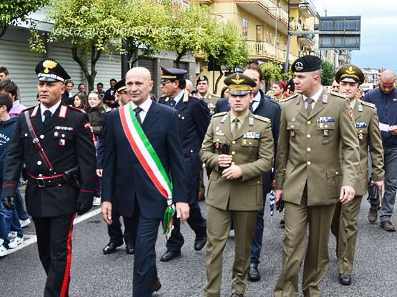 Si sono svolte ieri mattina le celebrazioni per la festa delle forza armate, posticipata al 6 novembre per consentire la partecipazione di tutti i cittadini. Il corteo è partito dal Municipio, per poi trasferirsi in via Roma per l’alzabandiera e la deposizione della corona di alloro in Piazza IV novembre. Il corteo era preceduto dalla protezione civile, la polizia municipale in alta uniforme con lo stemma del comune, Salvatore Caiazzo e Grazia Aulisio, il comandante della stazione dei carabinieri di Bellizzi e una rappresentanza dell’esercito e delle scuole cittadine. Presente il sindaco di Bellizzi, Giuseppe Salvioli, gli assessori e i consiglieri comunali. Durante la cerimonia dell’alzabandiera c’è stata una forte commozione, che ha contagiato tutti i presenti. Molto emozionante anche il momento dell’inno nazionale, suonato dalla banda musicale di Montecorvino Rovella. In Piazza IV novembre, dopo la deposizione della corona di alloro, è stato letto il bollettino di guerra dalla prof.ssa Maria Pia Manera. Nel suo intervento il sindaco ha dichiarato: “Ho memoria storica nel ricordare i valori, per cui i giovani di allora hanno combattuto e hanno fatto tanti sacrifici per portare la pace. Questi valori i combattenti li hanno trasferiti alla società attuale. Ringrazio le scuole presenti ed invito i giovani a raccogliere l’esempio di questo coraggiosi soldati,di farne tesoro e di trasferirlo nel loro vivere quotidiano, un esempio fatto di rispetto delle regole e di amore verso la pace”. L’ultima parte della manifestazione sono state distribuite le onorificenze ai membri dell’associazione combattenti e reduci del comune di Bellizzi con l’immancabile foto di rito.